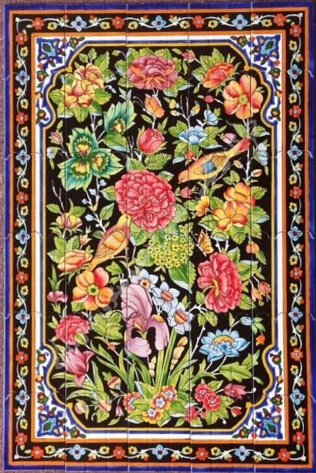 رنگآمیزی نقشهای گل و مرغ و بهطور کلی نگارگری ایرانی واقعگرا نیست و نقاش در انتخاب رنگها کمابیش آزادی عمل دارد.